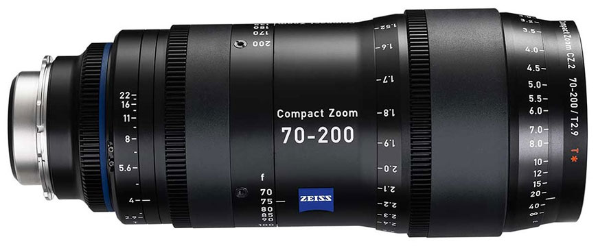 The ZEISS 70-200mm T2.9 Compact Zoom CZ.2 Lens with PL Mount is a telephoto zoom lens that is optimised for motion picture production. The lens offers full-frame (36 x 24 mm) coverage and exhibits no focus shift over the zoom range. The cine-style housing features calibrated focus scales and industry standard gearing for focus, iris and zoom. At 9.84" long and with a weight of 6.2 lb, the 70-200mm is relatively compact and lightweight, which makes it ideal for handheld and Stedicam applications.